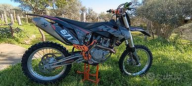 Vendo KTM sx-f 450 da cross anno 2013 tenuta da amatore e usata per uscite domenicali, 37.5 ore all attivo dal rifacimento motore , pneumatici e pastiglie freno ant e post sostituiti di recente,mono revisionato da Poletti , cuscinetti ruota posteriore nuovi. Tagliandata con olio motorex. Inoltre monta terminale akrapovic e centralina Athena doppia mappa con controllo trazione su 10 livelli, dischi braking , pedane maggiorate e qualche altra piccolezza! No perditempo chi è interessato venga a vederla di persona!
