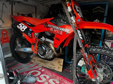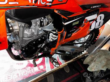 Vendo K TM SX F250 anno 2023 ma acquistata ad inizio 2024. La moto ha 80 ore totali ma a 45 ore è stata sostituito pistone, alberi a camme, valvole, testata e frizione a causa di una rottura sulla seconda moto per tale motivo si è preferito mettere i pezzi nuovi sulla prima moto. Cerchi in ottime condizioni, cassa filtro plastiche e selle originali mai utilizzate così come lo sterzo. Sospensioni by Salucci Racing. Moto solo con 450 Honda/Ktm o 250 ktm 2025