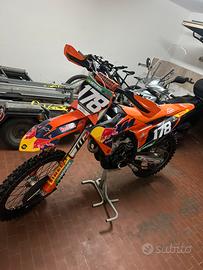 Vendo ktm sxf 250 2024 graficato red bull con 60 ore di pistone e 120 ore di blocco. La moto è perfettamente funzionante non necessita di nessun lavoro ulteriore. Mai fatto gare, solo uscite domenicali. La moto monta power parts come copri disco ant., sella della valle, kit di plastiche graficate red bull e originali e paracolpi rental arancione.