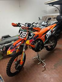 Vendo ktm sxf 250 2024 in condizioni ottimali, la moto e pronta all’uso e non necessita di nessun lavoro. É stato appena rifatto pistone cilindro e distribuzione. La moto possiede diverse powerparts, come ventola di raffreddamento del radiatore( ktm farioli) copertura sella della valle, tendicatena distribuzione ktm powerparts, paradisco circuit nero carbonio, paramotore con paraleveraggio, ruota di scorta e paramani racetech arancioni.In dotazione con la moto cedo doppio kit di plastiche, 3 filtri dell’aria e copriftro per lavaggio. Per qualsiasi informazione scrivete al numero 3515192250