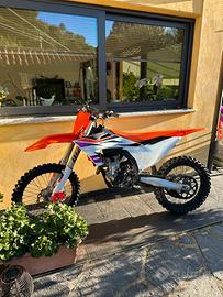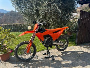 come da titolo vendo ktm sxf 250 del 2024, attualmente 50h di telaio, plastiche originali perfette + 2 kit arancioni la moto è prfetta e non mecessita di alcun lavoro da fare vendo causa passaggio a moto da strada