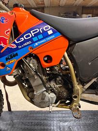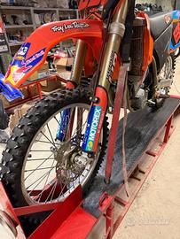Vendo KTM SXF 450 4 tempi del 2003 non targata. Come si vede dalle foto il gruppo termico è da sostituire causa rottura cilindro, moto e motore da revisionare, la moto non è stata smontata e si vende così come in foto! POSSIBILITÀ DI SPEDIZIONE VELOCE IN TUTTA ITALIA.