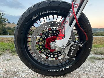 Vendo KTM 450 SX-F 2022 replica cairoli A novembre 2023 la moto è stata portata a telaio per rifarla interamente da zero, targata poi a febbraio 2024. Il blocco è stato aperto e revisionato, al momento ha 136h di utilizzo e 8000km, sempre tagliandata ogni 15-20 ore, a 70 fatto gioco valvole. -Di serie la moto esce cross con 4 marce ma sono state aggiunte quinta e sesta durante il rifacimento del blocco -Candela cambiata a 130h -Il telaio è stato riverniciato di nero e le piastre anodizzate di nero -Forcelle e mono induriti per uso stradale -Impianto frenante completo accossato -Blocchetto chiave(con doppia chiave) da VM Racing -Cerchi FaBa -Svariati pezzi in carbonio CMT -Scarico completo fmf -Gomme Michelin Pilot non mi ricordo: anteriore 70% e posteriore praticamente nuova -Faro, frecce e stop completamente funzionanti -Cedo anche un secondo kit di plastiche, olio e filtri inutilizzati, un secondo faretto dato insieme ai componenti dell'omologazione -Guidabile con patente A2 Prezzo trattabile dopo visione Accetto solo bonifico Passaggio a carico dell'acquirente Valuto scambi con KTM 690 SMC o Ducati 698 RVE Tag per ricerca: Ktm husqvarna gasgas exc sxf sx tc fc te fe smr 450 300 125 motard cross enduro