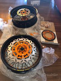 Al momento la moto è in configurazione motard con cerchi excel color nero lucido, mozzo talon anodizzato arancione, corona da 48 anodizzata arancione e gommatura Pirelli Diablo rosso III (gomme appena cambiate apposta per la vendita) vendo assieme disco del freno anteriore da 360.