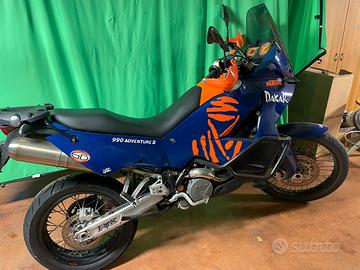 Stupenda KTM 990 S 2007 con solo 34.715 km. Tenuta perfettamente, pronta all’uso, due cupolini, , quattro specchietti, forcella e mono regolabili. Moto tagliandata, con: Batteria nuova, Trasmissione completa Gomme nuove Filtri motore e olio appena cambiati Filtro aria lavabile BMC Consegna anche parti originali, doppia chiave, Para mani e manopole KTM, presa per ricarica cellulare, faretti di profondità e para carene. Nessun lavoro da eseguire. Vendo per inutilizzo. Perfetta in ogni sua parte.