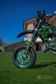 Vendo kx 125 Motard del 2005 Con tripla omologazione è omologata per due Moto con all’attivo 30 ore di motore DOPPIA MAPPATURA Al momento dei lavori al motore è stata montata un accesione HPI con piattello e con doppia mappatura con selettore a manubrio Vi chiedo di leggere attentamente!! La moto è perfetta, sono il secondo proprietario, e da me la moto è stata riportata a nuovo sotto tutti i punti di vista, (vedere per credere)! La moto verrà fornita con doppio kit. La moto monta gruppo termico ORIGINALE con 30 ore dal rifacimento (Biella, pistone mono fascia, cuscinetti, e via dicendo) Revisionato 5 ore fa: leveraggio compleato, pompa anteriore e posteriore, pinza anteriore e posteriore Pastiglie nuove Tagliando fatto ogni 25/30 ore (cambio olio e pulizia/cambio filtro) La moto monta: -Kit motard (cerchi lame Excel mozzo faba, disco 320, tubo in treccia accostato) -Copertoni metzeler -Plastiche restayling polisport -Grafiche Cecchi graphichs -Copri sella wd racing -Portatarga pieghevole gtlab -Impianto elettrico completo gtlab -Manubrio nrteam, leve nicecnc, pedane nrtem, pedale freno e cambio nrtem -Kit completo componenti 3d FDMOTOLAB (cover accensione, slider, tamponi, parapignone, recupero fluidi, copritelaio) -Cassa filtro in carbonio -Protezione pinza posteriore CMT carbonio -Copri forcella anteriori superiore Carbonio -Copri forcellone polisport -Espansione scalvini -Terminale bud full carbon Nella configurazione cross: Cerchi con lama Excel NERI Altro kit di pastiche con GRAFICHE Tutte le componenti originali Ho 2/3 scatoloni di roba che verrà fornita al momento dell’acquisto (2corono p, 1 pignone, un’espansione, un terminale, 2 manubri e molto altro ancora) Prezzo 6800, disponibile per qualsiasi visone, vi chiedo di essere sinceri grazie 🙏