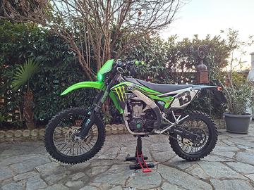 vendesi kawasaki KX450F del 2018 la moto ha 215h a telaio ma il motore ha 15h (tutti i lavori sono stati fatti da un meccanico, dimostrabile con ricevute), la moto ha tripla omologazione ( cross, enduro e motard), è omologata con 2 posti ed è guidabile con patente A2 a 18 anni ( è depotenziata solo a libretto). chi fosse interessato o volesse più informazioni puo' chiamarmi al numero 3277580056. prezzo 6250€ trattabili.