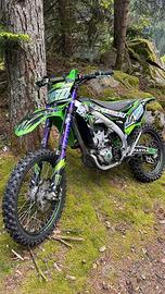 Vendo kawasaki 450 del 2018, moto tenuta maniacalmente, fatta sempre scaldare e fatti tagliandi regolarmente(15h) la moto ha 80ore di motore originali(dimostrabili)(uso amatoriale)(mai pista), appena rifatte le forcelle. Possiede anche la tripla omologazione. Le gomme attualmente sono all' 80% circa. Vendo per passaggio a cilindrata superiore. Cedo anche tutti i pezzi originali della moto. Per qualsiasi domanda o maggiori info contattami...