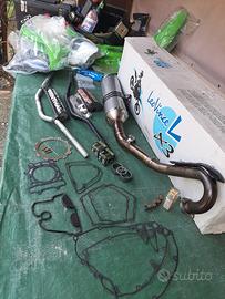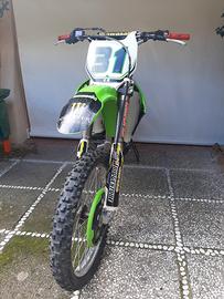 Moto con nemmeno 35 ore totali e tutti i lavori fatti a tabella costruttore(olio ogni 2,5h; pistone vertex ogni 8h etc) valvole nuove sempre titanio ,modifica pompa d ripresa fcr e fase distribuzione ottimo arco d erogazione per insistere con una marcia allunga parecchio.sospensioni ant kit completo rifatto d recente e mono,leverismi e cuscinetti tutti ottime condizioni.