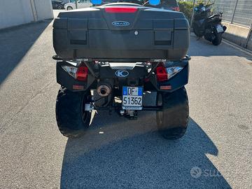 Quad Kimco 500 4x4 disinseribile a 2 ruote motrici elettricamente,tenuto in perfette condizioni tagliandato e revisionato, gancio traino bauletto di grandi dimensioni gommata in buone condizioni.
