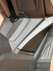 Di serie con manopole riscaldate, sisitema Kymco NODOOE con navigatore e notifiche sul cruscotto, presa USB, parabrezza regolabile, avviamento keyless, controllo acceleratore elettronico ETS, freni Brembo, ammortizzatore posteriore monobraccio oscillante