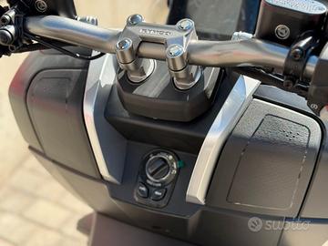 KYMCO DINK-X 125 Nato per chi non si ferma davanti a nulla, DINK-X 125 garantisce prestazioni eccellenti sia su strada sia su sterrato, nel nome dell'avventura e del divertimento alla guida, senza dimenticare la funzionalità. Salire in sella e partire alla scoperta di nuove mete non è mai stato così facile: il nuovo DINK-X 125 unisce una dotazione da vera adventure con il design accattivante. È una scelta vincente per tutti coloro che desiderano vivere la mobilità urbana in modo moderno e originale. L'aspetto aggressivo, frutto di linee decise, esalta il senso di dinamicità e di movimento, ponendolo al centro dell'attenzione. I pannelli della carrozzeria sono robusti e, grazie all'abbinamento con il telaio in acciaio ad alta resistenza, permettono allo scooter di affrontare senza problemi condizioni di utilizzo gravose. Il manubrio ampio e libero da sovrastrutture ricorda quello di una leggera motocicletta da enduro. I gruppi ottici FULL LED, oltre a garantire un'ottima visibilità notturna, contribuiscono a caratterizzare esteticamente l'avantreno e il retrotreno. Anche gli essenziali ed efficaci indicatori di direzione sono a LED. Possibilità di Assicurazione in Sede Spediamo la Tua moto in tutta Italia, con corriere dedicato Servizio Videochiamata Contattaci al Ti aspettiamo a Viterbo, Strada Teverina 20 Seguici su Instagram, Facebook e sul nostro Sito Internet per restare sempre aggiornato ---------------- CONTATTI RESPONSABILI COMMERCIALI Moto : Valerio/Daniele/Lorenzo Abbigliamento : Chiara Officina/Ricambi : Marco Titolare : Valeria
