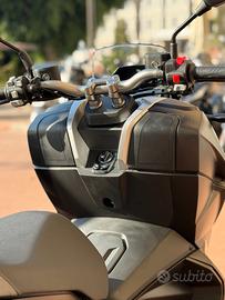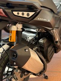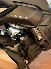 Nato per chi non si ferma davanti a nulla, DINK-X 125 garantisce prestazioni eccellenti sia su strada sia su sterrato, nel nome dell'avventura e del divertimento alla guida, senza dimenticare la funzionalità. Salire in sella e partire alla scoperta di nuove mete non è mai stato così facile: il nuovo DINK-X 125 unisce una dotazione da vera adventure con il design accattivante. È una scelta vincente per tutti coloro che desiderano vivere la mobilità urbana in modo moderno e originale. L'aspetto aggressivo, frutto di linee decise, esalta il senso di dinamicità e di movimento, ponendolo al centro dell'attenzione. I pannelli della carrozzeria sono robusti e, grazie all'abbinamento con il telaio in acciaio ad alta resistenza, permettono allo scooter di affrontare senza problemi condizioni di utilizzo gravose. Il manubrio ampio e libero da sovrastrutture ricorda quello di una leggera motocicletta da enduro. I gruppi ottici FULL LED, oltre a garantire un'ottima visibilità notturna, contribuiscono a caratterizzare esteticamente l'avantreno e il retrotreno. Anche gli essenziali ed efficaci indicatori di direzione sono a LED.
