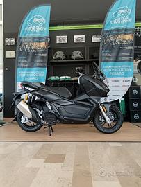 Caratteristiche tecniche: Motore raffreddato a liquido con12 CV di potenza, Sistema frenante dotato di ABS, TCS (controllo di trazione)di serie, Pneumatici da 14 pollici anteriore e da 13 pollici posteriore, Vanosottosella capace di stivare un casco integrale, Strumentazione LCD, Gruppiottici FULL LED.