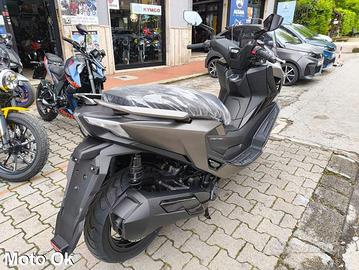 Il Downtown 350GT, come si evince dal nome, è uno scooter pensato come instancabile compagno di viaggio, con cui vivere sia la città, sia lunghi tragitti extraurbani. Sette giorni su sette. Qual è il segreto? Una dotazione ricchissima e alcuni accorgimenti studiati per aumentare il comfort. Le sovrastrutture del nuovo Kymco Downtown 350GT sono caratterizzate da linee tese, che rendono il design filante e sportivo, nonostante l'abitabilità per pilota e passeggero siano un riferimento tra gli scooter GT di media cilindrata. La sezione frontale propone uno scudo di dimensioni generose, che garantisce una protezione dall'aria ottimale anche nei mesi freddi. La parte anteriore dello scudo ospita i gruppi ottici con tecnologia full LED a sviluppo verticale e gli indicatori di direzione montati a filo con la superficie della carrozzeria. Il parabrezza dal disegno arrotondato nella parte superiore riduce al minimo le turbolenze nella zona del casco. La vista laterale del Downtown 350GT conferma la sua vocazione da scooter cruiser. La pedana è stata disegnata per offrire grande libertà di movimento sia longitudinalmente (con più punti di appoggio per i piedi), sia orizzontalmente, grazie alla superficie disponibile particolarmente ampia. La sella su due livelli, impreziosita dal rivestimento antiscivolo, è stata progettata per garantire il massimo comfort, con la zona dedicata al passeggero molto estesa e completata da maniglie ergonomiche perfettamente integrate nel codone. Il design si arricchisce grazie al terminale di scarico dotato di cover in tinta con la carrozzeria. D'impatto il gruppo ottico posteriore, anch'esso full LED e con indicatori di direzione integrati.