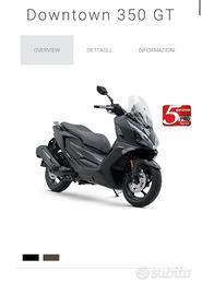 Da Morando in pronta consegna il nuovo Kymco Downtown GT 350 euro 5 plus. Motore Kymco G5, 4 valvole da 28,6 Cv, fari full Led,, display lcd completo e ben visibile in ogni condizione, presa usb C, vano sottosella per 2 caschi integrali, ruota anteriore da 15 pollici, consumi contenuti e un peso piuma di soli 185 kg a secco. Adatto sia per la città che per il fuori porta. Promozione valida solo sul disponibile in pronta consegna Con garanzia Kymco Plus di 5 anni sul motore e sul telaio e un anno di soccorso Aci Global Possibilità di finanziamento senza anticipo e consegna in tutta Italia. Per ragioni di natura tecnica o commerciale la concessionaria potrà apportare modifiche alle condizioni riportate senza preavviso. Si declina ogni responsabilità per eventuali e involontarie incongruenze o errori che potrebbero non corrispondere alle aspettative del cliente.