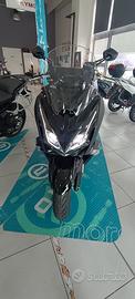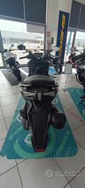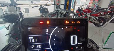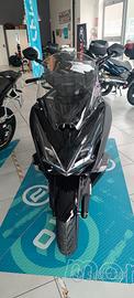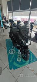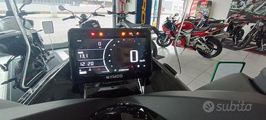 PIÙ SICURO PIÙ TECNOLOGICO PREZZO F.C. Il nuovo Kymco Downtown 350GT promette di svicolare nel traffico con la stessa facilità con cui affronta il tragitto della classica uscita fuoriporta Il Downtown 350GT, come si evince dal nome, è uno scooter pensato come instancabile compagno di viaggio, con cui vivere sia la città, sia lunghi tragitti extraurbani. Sette giorni su sette. Qual è il segreto? Una dotazione ricchissima e alcuni accorgimenti studiati per aumentare il comfort. Le sovrastrutture del nuovo Kymco Downtown 350GT sono caratterizzate da linee tese, che rendono il design filante e sportivo, nonostante l'abitabilità per pilota e passeggero siano un riferimento tra gli scooter GT di media cilindrata. La sezione frontale propone uno scudo di dimensioni generose, che garantisce una protezione dall'aria ottimale anche nei mesi freddi. La parte anteriore dello scudo ospita i gruppi ottici con tecnologia full LED a sviluppo verticale e gli indicatori di direzione montati a filo con la superficie della carrozzeria. Il parabrezza dal disegno arrotondato nella parte superiore riduce al minimo le turbolenze nella zona del casco. La vista laterale del Downtown 350GT conferma la sua vocazione da scooter cruiser. La pedana è stata disegnata per offrire grande libertà di movimento sia longitudinalmente (con più punti di appoggio per i piedi), sia orizzontalmente, grazie alla superficie disponibile particolarmente ampia. La sella su due livelli, impreziosita dal rivestimento antiscivolo, è stata progettata per garantire il massimo comfort, con la zona dedicata al passeggero molto estesa e completata da maniglie ergonomiche perfettamente integrate nel codone. Il design si arricchisce grazie al terminale di scarico dotato di cover in tinta con la carrozzeria. D'impatto il gruppo ottico posteriore, anch'esso full LED e con indicatori di direzione integrati.
