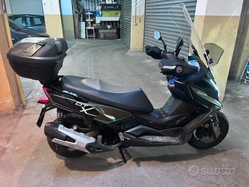 Vendon kymco dtx 360 cilindrata 300,immatricolato 17/04/2024,ottimo stato,nessun lavoro da effettuare,come si vede dalle foto ho fatto istallare staffa per bauletto isotta non quella tradizionale che si vedono in giro brutte esteticamente,bauletto givi blade 47 litri,easy Block originale,gomme cambiate 3000 km fa,dotato dí paravento alto isotta in piu do quello originale basso piu i paramani originali.doppie chiavi di tutto.tassa appena pagata fino a febbraio 2027,escluso passaggio.