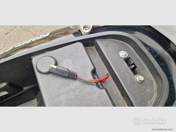Ampio vano sottosella ci sta un jet con visiera e qualche piccolo oggetto e c'è anche la presa a 12 v per ricaricare il cellulare oltre ad essere istallato il cavo di mantenitore batteria.