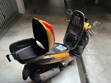 Vendo Kymco People 300 GT, in rara colorazione arancio. Usato quotidianamente tutto l'anno, funziona alla grande. Sempre tagliandato alle scadenze previste con olio Motul 7100 . Pastiglie freno (sbs) anteriori e cambio olio eseguito 1 mese fa. Sella rifoderata (sullo sfondo del libretto) e copertina termoscudo Tucano Urbano presa l'anno scorso. Naturalmente presenta qualche segno del tempo qui e li ma puoi lasciarlo in strada senza catena e stare tranquillo. Regalo pastiglie posteriori imballate e parabrezza. Vendo per passaggio a cc maggiore.