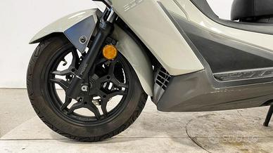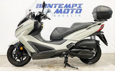 Motore: monocilindrico da circa 276 cc, raffreddato a liquido, 2 valvole per cilindro, distribuzione OHC, alimentazione a iniezione elettronica. Potenza: circa 24-25 CV ([?] 18 kW) a circa 7.250 giri/min. Coppia: circa 25 Nm a circa 6.250 giri/min. Trasmissione: variazione automatica (CVT), trasmissione finale a cinghia. Telaio e ciclistica: telaio in tubi d'acciaio e piastre stampate; forcella anteriore telescopica (Ø variabile) escursione circa 110 mm; sospensione posteriore con doppio ammortizzatore regolabile (precarico) escursione circa 99-100 mm; cerchi in lega: anteriore 14'' con pneumatico 120/80-14, posteriore 13'' con pneumatico 150/70-13; freno anteriore a disco Ø circa 260 mm, freno posteriore a disco Ø circa 240 mm, dotato di ABS su doppio canale. Altezza sella: circa 800 mm. Peso: circa 181 kg a secco ([?] 200 kg "in ordine di marcia"). Serbatoio: capacità circa 12,5 litri. Stile: scooter "midi-maxi" commuter/touring leggero, impostazione comoda ma con un pizzico di sportività; ruote relativamente compatte (14''/13'') per migliore maneggevolezza urbana, ma dotazione e motore adatti anche all'extraurbano; design moderno e funzionale, con vano sottosella capiente e buone finiture. Carattere: pensato per chi cerca uno scooter versatile: capace di muoversi agilmente in città e anche affrontare tragitti extraurbani con comfort e tranquillità; motore pieno e adatto all'uso quotidiano, ciclistica stabile e dotazioni di buon livello; meno indicato per guida estremamente sportiva tipo "pura moto" o per turismo pesante su lunghe distanze senza compromessi.