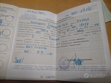 Completa di libretto di circolazione (è riportato il modello E anziché F per un evidente errore di trascrizione).