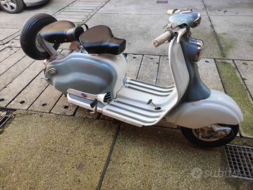 Lambretta 150 LD anno 1957 , tutta portata a zero la verniciatatura con i colori originale , il motore smontato dalla scocca , tutto controllato pulito, cambiate tutte le guarnizioni varie,+ quella della testata + paraolio motore e cambio, cambiate tutte le guaine fili freni, frizione, acceleratore, cambiato le manopole,+le leve freno e frizione, +cambiato il fanale completo posteriore + le gomme nuove, e camere d'aria, a il libretto + foglio complementare + la Targata Roma 18...tutto Originale ,e radiata d'ufficio, per cui da € 5700 ribasso a € 4900 perché è radiata d'ufficio.