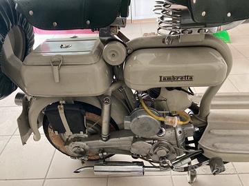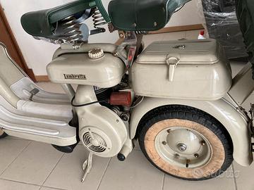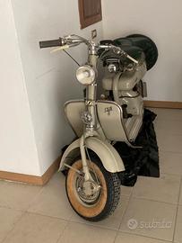 Lambretta D150. Anno 1955. Meccanica revisionata a febbraio 2024 (sostituita la frizione, verifica componenti, sostituzione pignone messa in moto, cambio olio,...). Vendo per inutilizzo. Il veicolo e' pronto per il passaggio di proprieta'. Veicolo ritargato. Il Libretto riporta l'inidicazione "veicolo di interesse storico". In foto non si vedono ma sono stati appena sostituiti gli pneumatici con gomme nuove marca Mitas bicolore. Causa inutilizzo potrebbe essere necessaria una nuova regolazione fine della carburazione. Condizioni estetiche molto buone. Veicolo conservato in locale chiuso. Per eventuali domande scrivetemi.