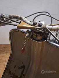 Lambretta LD 125 anni ’50, conservata e completa. Targa VE, libretto originale presente ma molto rovinato (leggibilità parziale). Ferma da tempo, da verificare..