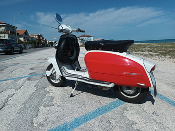 Bellissima lambretta restaurata 15 anni fa, unica pecca tecnica non funziona il contakm. Carrozzeria in buone condizioni come si vede dalle foto. Documenti e targhe originali, revisionata e perfettamente funzionante. Chiavi e portachiavi originali dell epoca, libretto di uso e manutenzione che di solito è introvabile o andato perso. La vera chicca per gli appassionati è il dépliant originale del 1962 del concessionario di vendita dove si trovano prezzi e foto dei modelli di quell'anno. Fornisco anche una riedizione introvabile della rivista "Passione Vintage" interamente dedicata alla storia Lambretta completa delle schede tecniche di tutti i modelli prodotti. Valuto permute parziali con scooter max 150cc di valore inferiore di mio gradimento. Prezzo leggermente trattabile se realmente interessati.