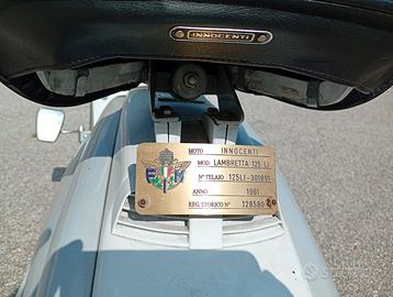 Vendo Lambretta 125 LI anno 1961, iscritta registro storico, targa originale con libretto originale.