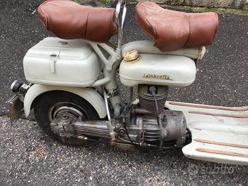 Lambretta 125 F Con targa e libretto (r.u.) . Da riprendere su diversi punti ( restauro parziale) accendeva qualche anno fa, ora per problemi alla pedivella non più acceso .
