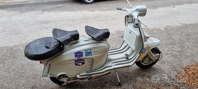 Vendo per inutilizzo lambretta SX 150 isctitta FMI con motore 200 Serveta e modificato con un 225 Mugello, centralina elettronica Variatronic 12v, frizione 5 dischi, carburatore da 32, cambio corto della 125 special adeguato al tipo di motore, scarico angillotti ammortizzatore gas posteriore, freno a disco anteriore e ammortizzatore anteriore in aggiunta e compresi nel prezzo: portapacchi anteriore ome da foto utilizzato solo 2 volte, doppie selle 2 nere due (rosse nuove), 2 selle lunghe di cui una giuliari e copertura nuova mai usata, il suo motore originale come da libretto (revisionato) Conservo tutti i ricambi del motore serveta ne caso voleste portarlo all'originale. Ruota di scorta e altri ricambi che adesso non ricordo. Applicato successivamente bauletto allo scudo e un serbatoio in acciaio inoX 18 litri, prezzo totale 4.500 poco trattabili. Passaggio e trasporto a carico del compratore. No permute ne scambi non accetto offerte insensate e non saranno prese in considerazione. Nessun lavoro manutentivo da fare. Per altre foto contattatemi