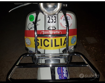 Vendo per inutilizzo lambretta SX 150 isctitta FMI con motore 200 Serveta e modificato con un 225 Mugello, centralina elettronica Variatronic 12v, frizione 5 dischi, carburatore da 32, cambio corto della 125 special adeguato al tipo di motore, scarico angillotti ammortizzatore gas posteriore, freno a disco anteriore originale Jnnocenti e ammortizzatore anteriore in aggiunta e compresi nel prezzo: portapacchi anteriore come da foto utilizzato solo 2 volte, doppie selle 2 nere due (rosse nuove), 2 selle lunghe di cui una giuliari e copertura nuova mai usata, il suo motore originale come da libretto (revisionato) Conservo tutti i ricambi del motore serveta ne caso voleste portarlo all'originale. Ruota di scorta e altri ricambi che adesso non ricordo. Applicato successivamente bauletto allo scudo e un serbatoio in acciaio inoX 18 litri, prezzo totale 4.500 non trattabili. Passaggio e trasporto a carico del compratore. No permute ne scambi non accetto offerte insensate e non saranno prese in considerazione. Nessun lavoro manutentivo da fare. Per altre foto contattatemi.