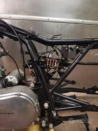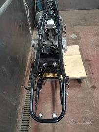 Telaio, forcellone, cavalletto motore completo di regolatore, dinamo, motorino avviamento, impianto elettrico, il motore gira e se ci credete l'ho anche messo in moto, il telaio è perfettamente verniciato dell'epoca, cuscinetti superiori nel canotto.