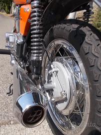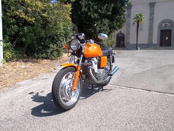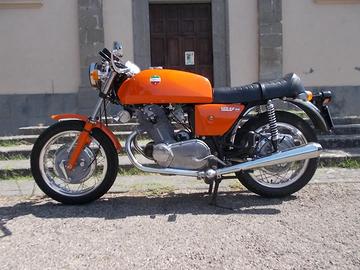 Laverda 750 SF anno 1973 la versione più potente nello stupendo arancio, ancora dotata del sistema Super Freni, in possesso di CRS ASI, targa ROMA. La moto monta, rispetto all'originale, semi manubri e parafango anteriore replica SF-C, modifica leveraggio frizione e scarichi nuovi replica. Prima dell'acquisto ha sostenuto una manutenzione completa da parte di nota officina nel ternano, tutta documentata. Da allora ha percorso 200 km. Vendesi per impossibilità di utilizzo.