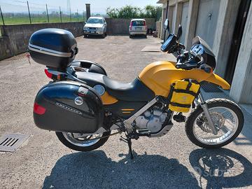 vendo bmw gs 650 f moto divertente totalmente ricondizionata dagli ammortizzatori nuovi sia anteriori paraoli e parapolvere molle ed oli e posteriore, yiss con regolazione estensione e precarico portacellulare,presa usb,presa mantenitore e caricabatterie con spinotto senza dover smontare niente ne sella ne altro paraman telaietti anteriori i set valige, e valigette anteriori motore 50.000 km regolazione valvole più sostituzione tutti gli oli e filtri freni compresi gomme nuove da vedere e provare con vo stra persona o meccanico di fiducia moto pronta all'uso manutenzione tutta fatturata. fatture presenti. prezzo leggermente trattabile.