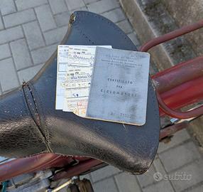 VENDO CICLOMOTORE LEGNANO T118 SAXONETTE AUTOMATIC Anno 1965 Numero telaio 53*** IGM 2456 OM Motore SACHS, ruote da 20 pollici, avviamento a pedale, cambio di tipo automatico a due velocità. Con librettino originale a pagine (certificato per ciclomotore) del 20/02/1965 ed ancora alcune copie dei vecchi “bolli” pagati dal primo proprietario, motore originale, carrozzeria in buone condizioni. L’unica modifica che è stata effettuata, come si può vedere dalle foto, è stata l’eliminazione del freno posteriore a contropedale portandolo sul manubrio con leva. Ciclomotore funzionante in tutte le sue parti, conservato molto bene, a richiesta posso inviare filmato del motorino acceso; le condizioni estetiche sono quelle delle foto allegate ed a richiesta posso inviare altre fotografie del mezzo. Il ciclomotore viene venduto nello stato di fatto in cui si trova, con la formula del “visto e piaciuto”; si tratta di vendita tra privati quindi con l’esclusione di ogni tipo di garanzia. Preferibile il ritiro a mano dell’oggetto in zona Vercelli; in alternativa posso effettuare la consegna in un raggio di 50 km da Vercelli con rimborso delle spese di gasolio da concordare. L’eventuale trasporto tramite corriere dovrà avvenire a cura e spese dell’acquirente; eventualmente si può utilizzare una delle varie piattaforme disponibili online (motohelp, spedingo, macingo ecc.) con costi a carico del compratore PREZZO DI VENDITA EURO 450 (leggermente trattabile)