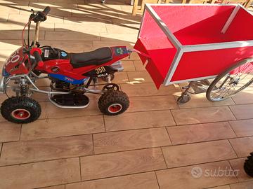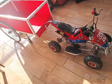 Quad 50 x bambini perfettamente funzionante completo di carrellino appendice artigianale con luci led portata150 kg,possibilità di trasformarlo elettrico
