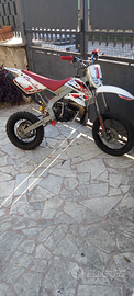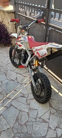 Vendo pit-bike motocross per ragazzi cilindrata 50+, 2 tempi marca Franco Morini Carabo numero 1 italiana al 100% mai incidentata è tenuta molto bene, il valore è nettamente superiore perché è italiana costruita totalmente in Romagna dove su ordinazione si possono chiedere prezzi di ricambio se dovessero servire,ma ne dubito.... Non paragonabile alle moto di nuova generazione che ormai sono tutte cinesi e sappiamo la fine che fanno alcune addirittura hanno il motore stampato che non si può aprire per ripararlo.... Regalo inoltre il kit completo di adesivi di colore blu nel caso in cui la preferireste in versione blu sempre originale inviatomi proprio dall'azienda Romagnola. Prezzo poco trattabile.