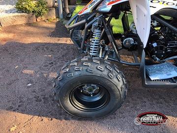 Nonsolo Fuoristrada rivenditore ufficiale Lem Motor vi Offre con disponibilità immediata in magazzino: QUAD KONDOR 125 cc. La versione con ruote GiGANTI da 8'' Design CORSAIOLO con scarico maggiorato, freni a disco anteriori e posteriori. Il Quad Sportivo per ragazzi e adulti. Alta qualità ed immenso Design. Scheda Tecnica : Motore 125cc 4 Tempi (Benzina) Monocilindrico Accensione elettrica E-Start /Pull Start Altezza sella 71cm Capacità media di carico 90 Kg Cambio Automatico con Retromarcia Doppio braccio anteriore Rinforzato Doppio Ammortizzatore Anteriore Mono Ammortizzatore Posteriore Mono Braccio Posteriore Rinforzato Manopole Pro Taper Faro Posteriore a Led Freni Anteriori a Disco Freno Posteriore a Disco Rinforzato Misure Prodotto 1400x880x700mm Paracolpi anteriore Scarico Racing Cromato Maggiorato Braccetti con ingrassatori Pedane antiscivolo Ruota anteriore 18/7-8" Ruota Posteriore 18/9-8" Trasmissione a Catena Sella con sistema Antiscivolo Telaio Maggiorato Rinforzato Questo veicolo non è omologato alla circolazione stradale, ma va usato esclusivamente su spazi privati o su piste circuiti riservati. Il veicolo può essere guidato dai bambini esclusivamente sotto sorveglianza da parte di un adulto. Tutte le nostre Moto o quad non sono giocattoli, ma articoli sportivi. Sono costruite rispettando le normative CE e ISO9000, vengono sottoposte a continui controlli di qualità. Nonsolo Fuoristrada Via Etnea, 90 (95030) Gravina di Catania Telefono 095 395364Ricambi - accessori: www.nsfline.com Parco auto: www.nonsolofuoristrada.com Mail: info@nonsolofuoristrada.com Per maggiori informazioni visitate il nostro sito o chiamateci al numero Nonsolo Fuoristrada vi ricorda che è distributore di monopattini elettrici, scooter elettrici, scooter benzina, mini moto, quad elettrici e scoppio, biciclette elettriche a pedalata assistita e tutto ciò che riguarda la