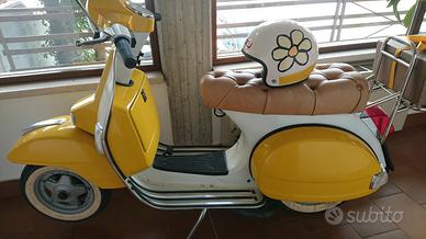 Vendo LML Star Deluxe 150 4T del 2010 (come Vespa px 150), ottime condizioni generali, motore con soli 3.464 KM, ridipinta bicolore per solo uso vetrina, portapacchi posteriore, casco Vintage, carrozzeria perfetta, Sella in pelle UNICA (realizzazione artigianale su disegno Frau)