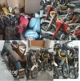 Vendesi circa 100 pezzi d’epoca tra moto, motorini, scooter, ecc. Vendo solamente tutti e 100 i pezzi insieme al prezzo di 17.000€. Non vendo i pezzi singolarmente, nemmeno a piccoli lotti di 10/20 ecc, solo tutti e 100 insieme. Non tutte le foto del lotto sono state pubblicate, siccome c'è il limite al caricamento di foto per l'annuncio non è possibile mostrarle tutte, quindi ci sono ulteriori pezzi non mostrati in foto. Per avere altre foto del lotto, contattare in privato (no perditempo, solo realmente interessati). Molti pezzi hanno la targa, parte anche con documenti originali. Tutti i pezzi del lotto vengono venduti con certificato di lecita provenienza. Posizione: Pompei (NA) NO PERDITEMPO, contattare in privato solo se realmente interessati all'acquisto dell'intero lotto di 100 pezzi circa, non sono intenzionato a vendere i pezzi singolarmente.