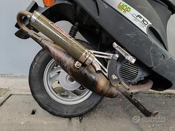 Motore MINARELLI con cilindro Polini 70cc, albero motore Top Performance, trasmissione completa Malossi, carburatore Dell'Orto 21, marmitta Giannelli racing con silenziatore in carbonio