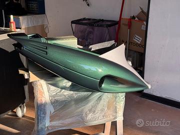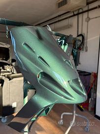 -riverniciato carene, telaio, cerchi e carter + foratura carter (carene color verde benzina; cerchi e mozzo del manubrio argento scuro)