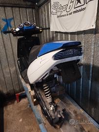 Lo scooter è completamente funzionante ed è dotato di doppio freno a disco, motore nuovo, pompa acqua nuova, gomme nuove, frecce nuove, pedalina avviamento nuova,porta targa nuovo,faro posteriore a led nuovo,carene riverniciate con vernice poliuretanica da carrozziere, dispone di filtro aperto e marmitta sito plus, telaio sabbiato e riverniciato di bianco, ammortizzatore posteriore revisionato, forcelle anteriori nuove,cavalletto laterale nuovo, dispone di vano sottosella per il casco, batteria nuova (ho tutte le fatture dei pezzi nuovi) per qualsiasi domanda scrivetemi, prezzo trattabile.