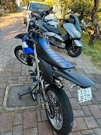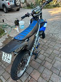 Vendo Malaguti xsm 50 2004 -cilindro e pistone dr70 -Motore con 10.000 km -Espansione e silenziatore arrow omologati -carburatore 16,5 -mono tarato motard -forcelle tarate motard -Impianto frenante APJ/Bracktec -v face bianca -angel eye blu -Impianto elettrico con luci, frecce a batteria installata ma attualmente non funzionano causa dei cavi che fanno contatto che non sono riuscito a individuare al momento -insieme ad essa do tutti i pezzi originali, piu alcuni cambi (filo gas, filo frizione ecc ecc) il tachimetro segna 24.000 km ma motore completamente rifatto a 14.000 in caso di domande non esitate a contattarmi vendo per passaggio a cilindrata superiore PREZZO TRATTABILE