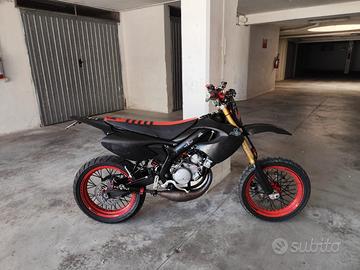 Motard Malaguti XSM con il seguente allestimento: -Tpr 86 -Albero corsa 44 tpr -Scarico KRM 80/90 -frizione completa top -carbiratore 28 pwk -filtro aria top -collettore aspirazione Polini 360° -pacco lamellare vl18 -accenzione mvt con luci a rotore interno -pompa freno radiale -disco maggiorato 320mm -strumentazione completa stage6 -Tubi in treccia -tabella piatta con faretto e incluso anche v-face -doppio radiatore Forcelle PAIOLI 40mm steli rovesciati PREZZO LEGGERMENTE TRATTABILE SOLO INTERESSATI - NO PERDITEMPO 3920087933 Adriano (Solo pomeriggio)