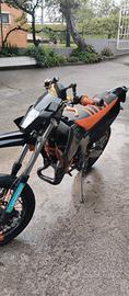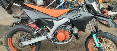 Vendo Malaguti xsm 50/86 per passaggio a cilindrata superiore con le seguenti caratteristiche: •Monta tpr 86 • Albero corsa 44 tpr • Cambio conico da competizione top (si ha la possibilità di cambiare le marce senza usare la frizione ad alti regimi) • frizione top • il gruppo termico monta: • cilindro e testa hebo tomahawk • pistone tpr 86 • squish 0,90mm • accensione originale • carburatore 24 pwk • filtro top • marmitta Malossi supermoto • collettore Malossi x360 • pacco lamellare wl18 malossi Al livello di ciclistica ha: • forcelle paioli • impianto frenante posteriore e anteriore ajp (pastiglie dei freni nuove) • gomme Michelin pstreet • rapporti corona/pignone 11/60 Al livello estetico ha: •Plastiche KTM exc 2010 •coprisella bikesellier • manopole TNT arancioni • gas rapido domino comandos • manubrio arancione • cerchi bicolori • leva frizione/freno arancioni • faro KTM Angel eyes • parafango anteriore KTM sx65 • frecce posteriori barracuda Impianto elettrico rifatto da 0 (bobina Polini e statore nuovo) • aggiunto accensione con blocco chiave In più regalo: mascherina piatta con barra led yz nera Plastiche KTM exc 2010 con grafiche Red bull Manubrio grigio Silenziatore gianelli Codino originale