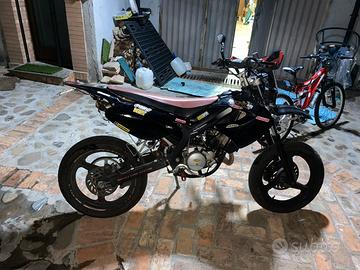 Dopo averla comprata a 1000 km nel 2023 ho cambiato praticamente ogni pezzo alla moto, anche in estetica, ora monta un dr nero 73,5cc carburatore 19 collettore tpr ma anche i freni avanti e dietro sono stati rinnovati completamente, le gomme nuove pirelli, marmitta e pancia malossi e dispone di contachilometri elettronico e un sensore elettronico al cavalletto oltre a tante cose estetiche. in totale ci ho speso solo per modifiche 2000